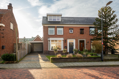 Aan rustig woonerf gelegen gemoderniseerde TUSSENWONING met 4 slaapkamers, vrijstaande GARAGE (ca. 37 m2) en een aangelegde zonnige tuin op het Westen.